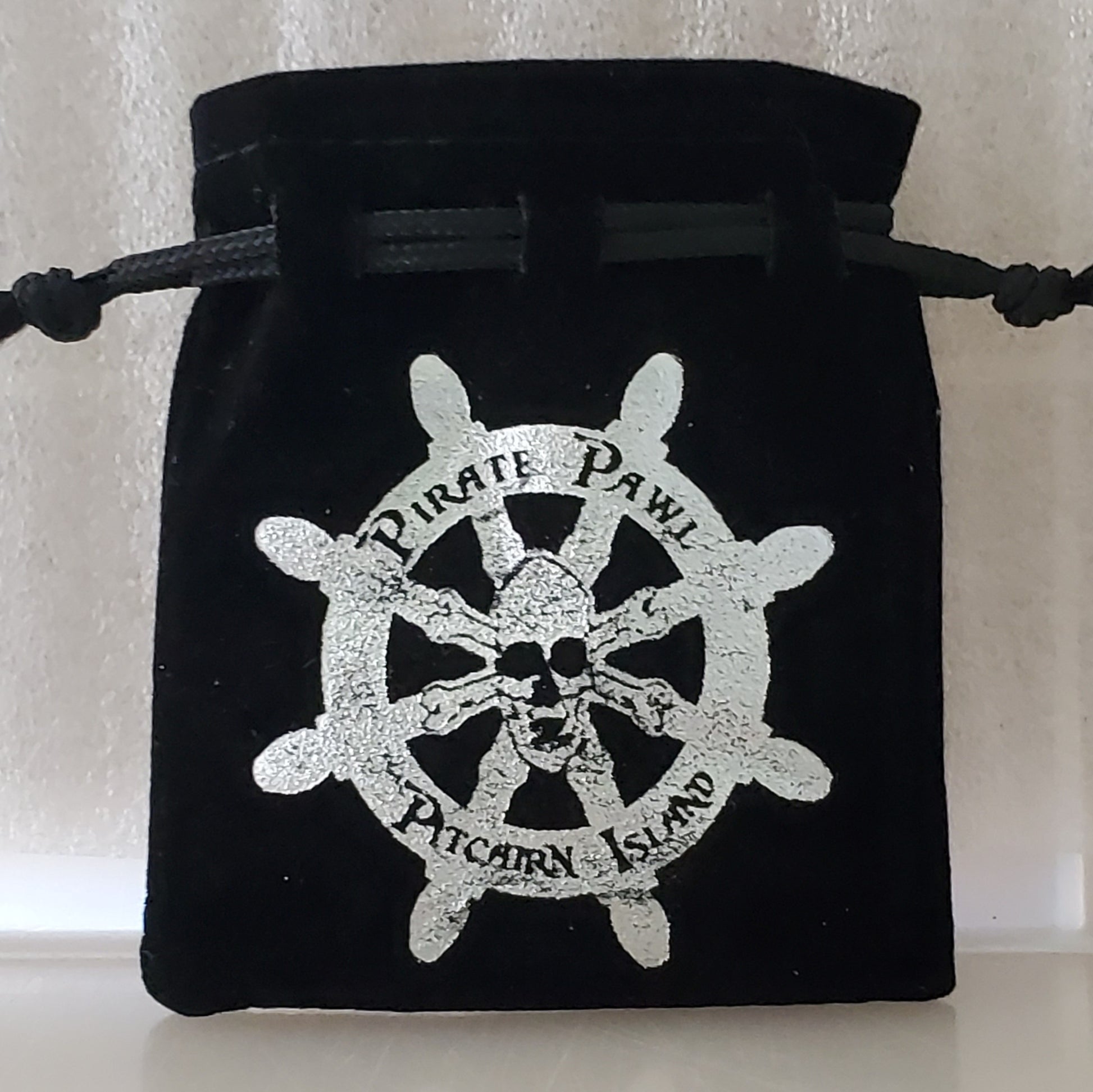 A carved bone Eye of Horus, a symbol of protection and good health. Featuring abalone inlay and Tahitian black pearl, on braided cord. This necklace comes to you in a Pirate Pawl baggie. 30 x 40mm