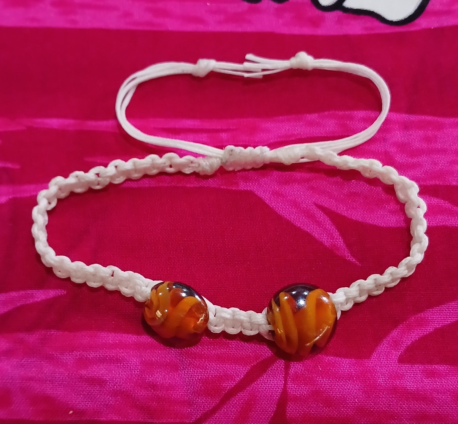 Handmade plain braided macrame adjustable bracelet featuring Brown glass beads. made by Darralyn Griffiths