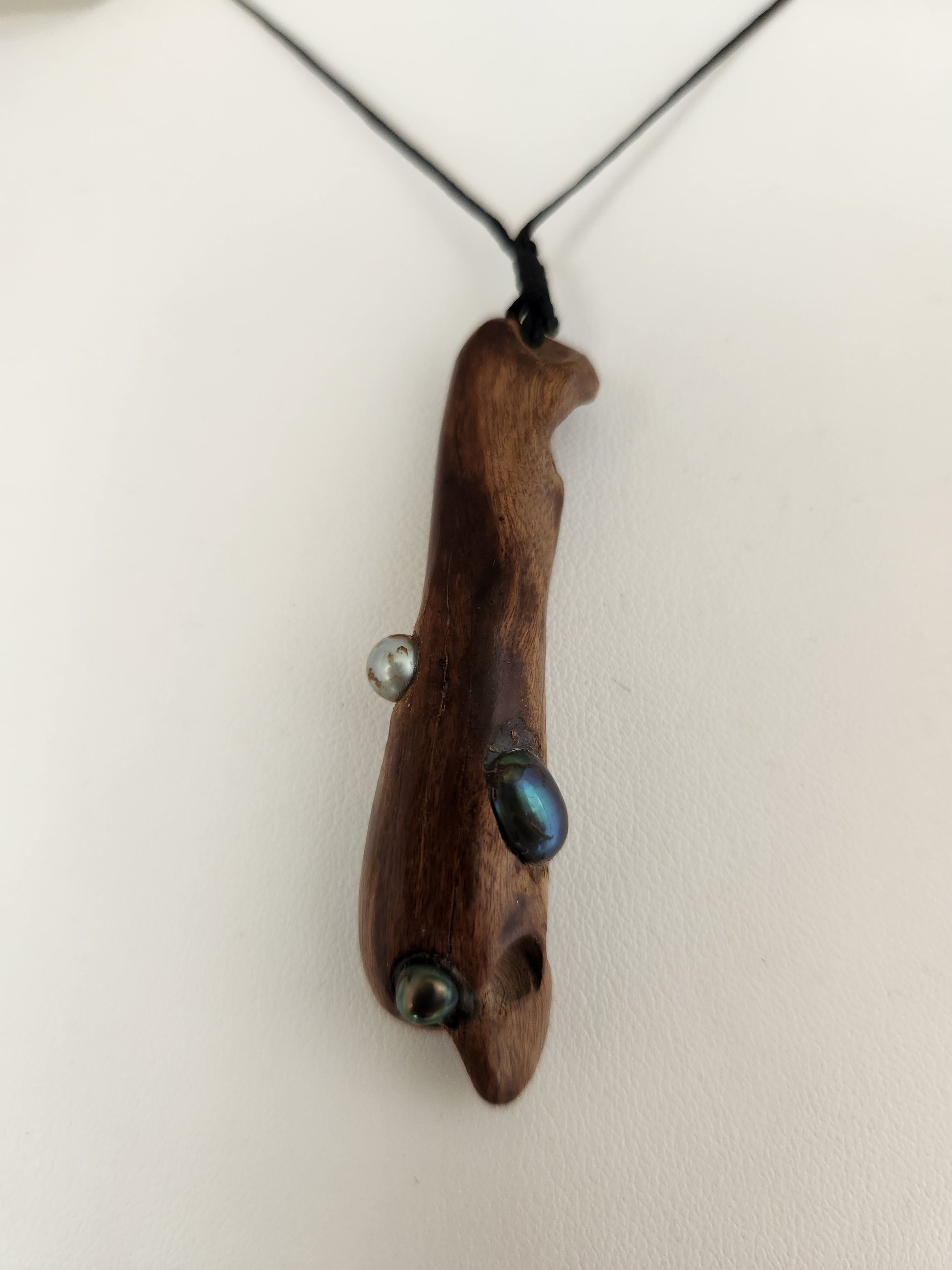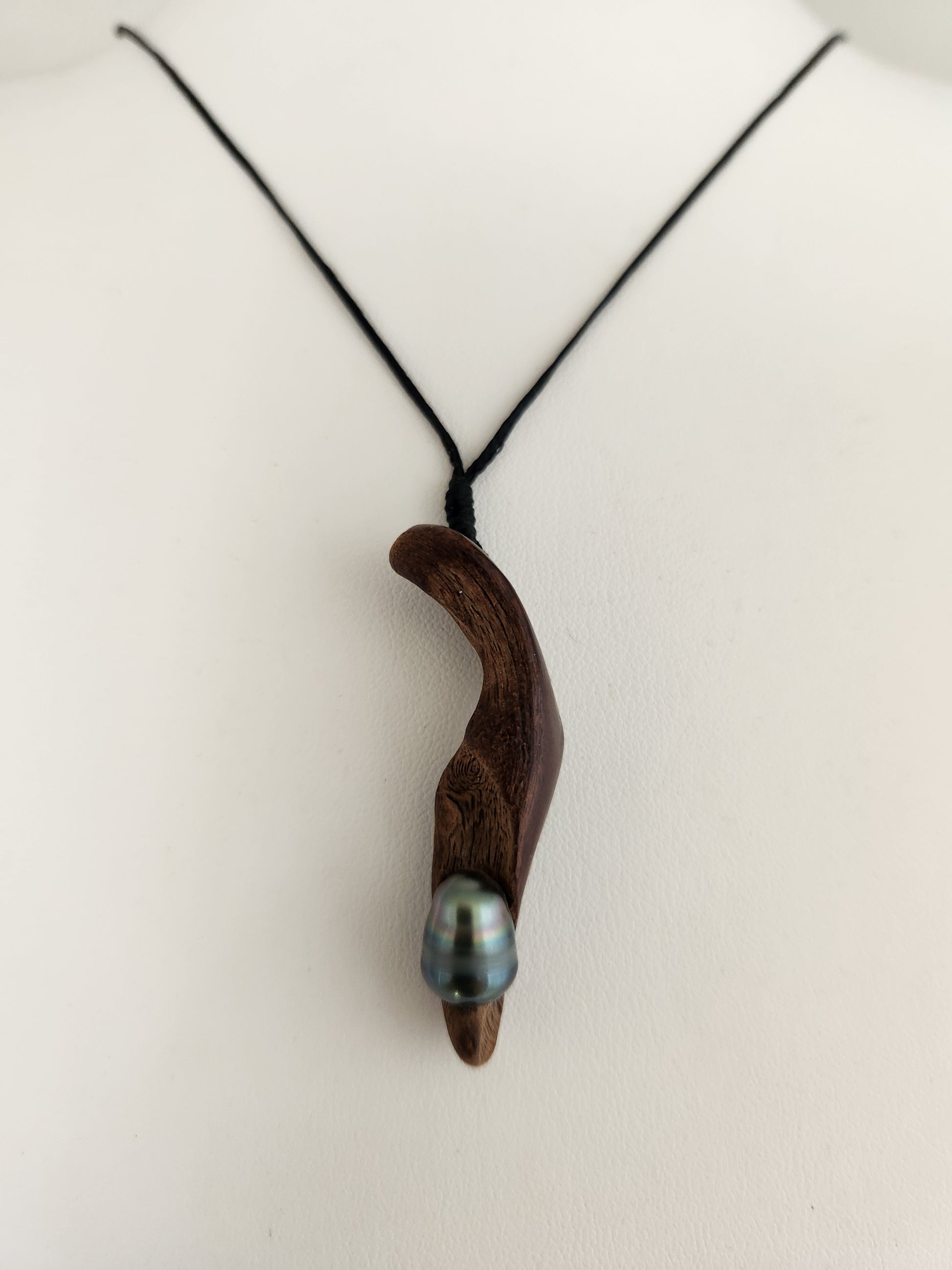 Unique Henderson Island Driftwood & Black Pearl Pendants. Inspired by one of Pitcairn's protected outer islands.
